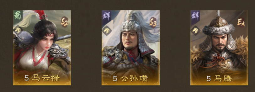 • 加点推荐:马云禄全武力加点,可搭配增加速度的装备,保证输出的同时争取先手。公孙瓒全速加点,利用高速发挥其战法效果。马腾全统率加点,提升自身坦度,更好地发挥辅助作用。