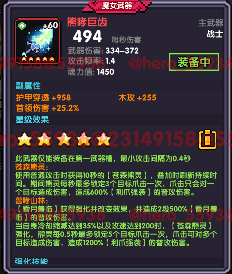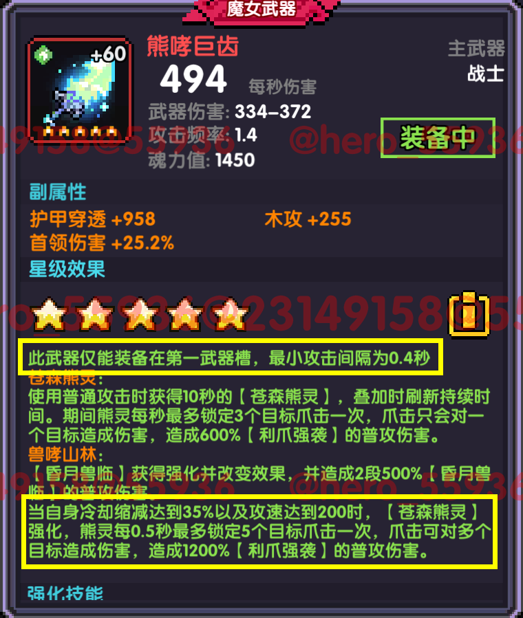 2. 小秘境100层之后佩戴最新的木系BD武器