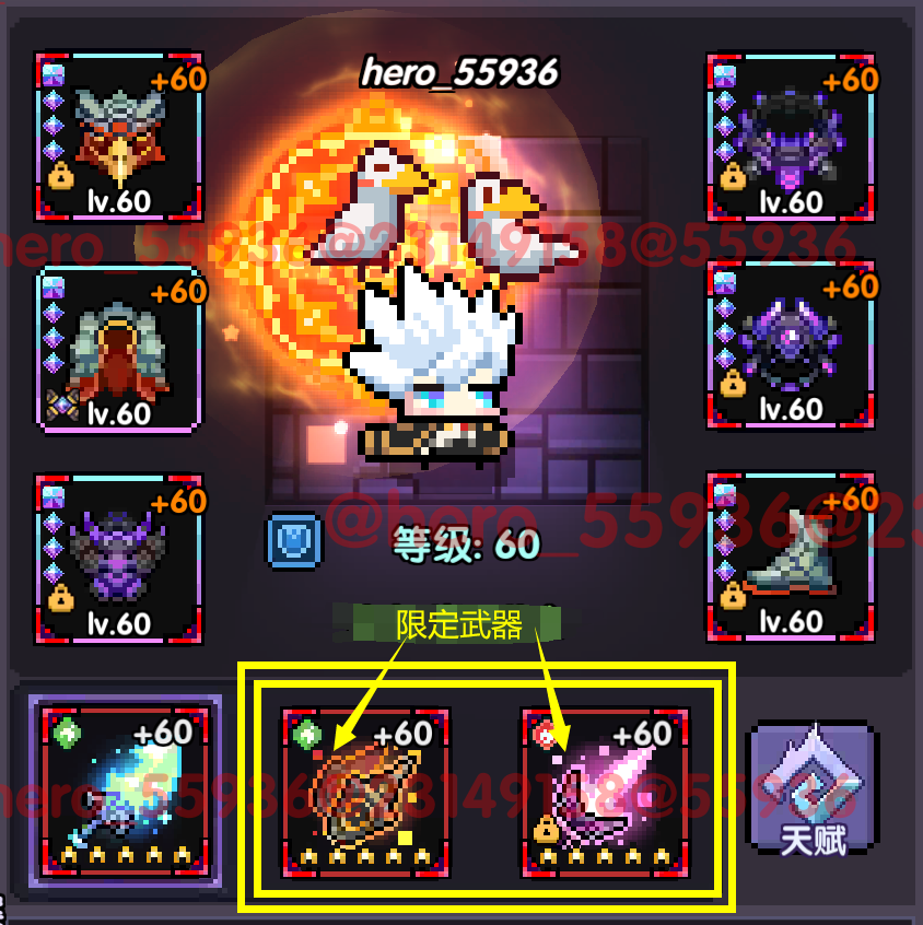 •限定武器装在背包中的第二、三格,根据不同的场景携带不同的限定武器。限定武器会给自身带来大量的属性加成。