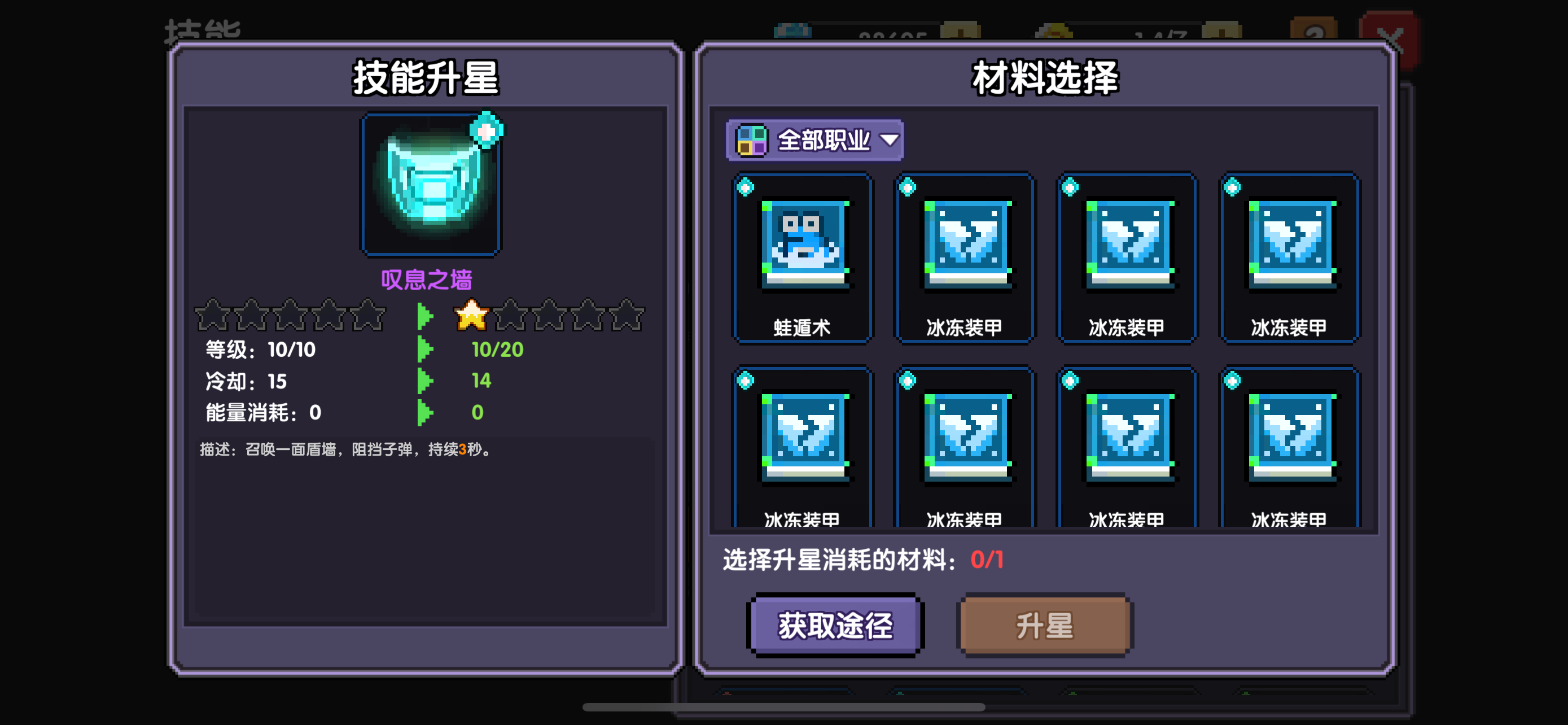 技能升星需要同品质的技能书,同样可以在商城,技巧试炼,活动商店,技能宝箱中获得。