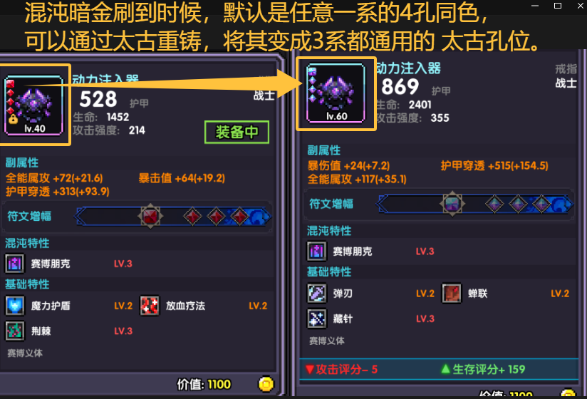 •注意符文颜色,只有太古品质的混沌暗金才能进行太古重铸!非太古品质的混沌暗金也是过渡装备。