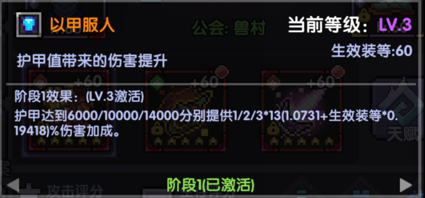 当你装备了3件LV3的混沌暗金,就可以触发阶段3的效果