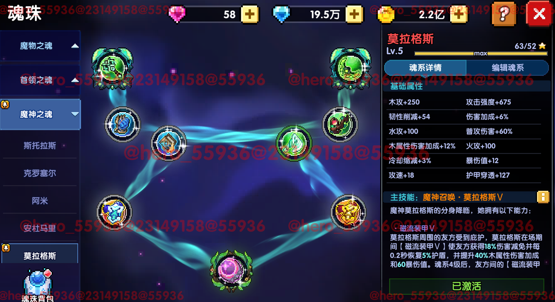 3.娜贝离诗系列:战士目前3系都是普攻BD,所以普攻魂珠相对通用,但由于是水系魂珠,适合在有一定基础后选择其中几颗来做。