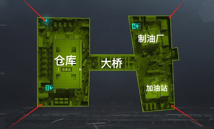 对峙港的出生点是四个角落随机分配,因此萤火虫要注意根据出生位置,快速找到适合的摸金点,并且每局常规撤离点都位于地图中自己出生点的对面,所以也要格外注意中间大桥区域的控制和争夺!