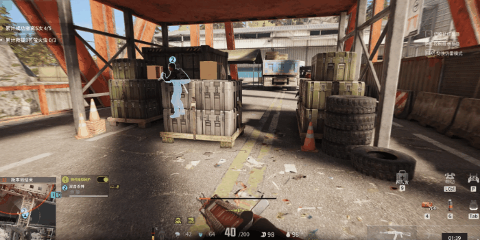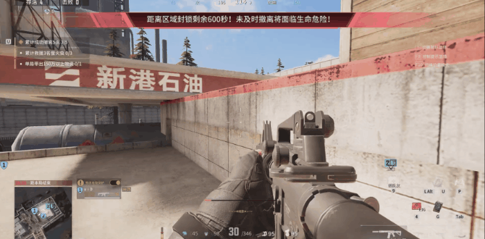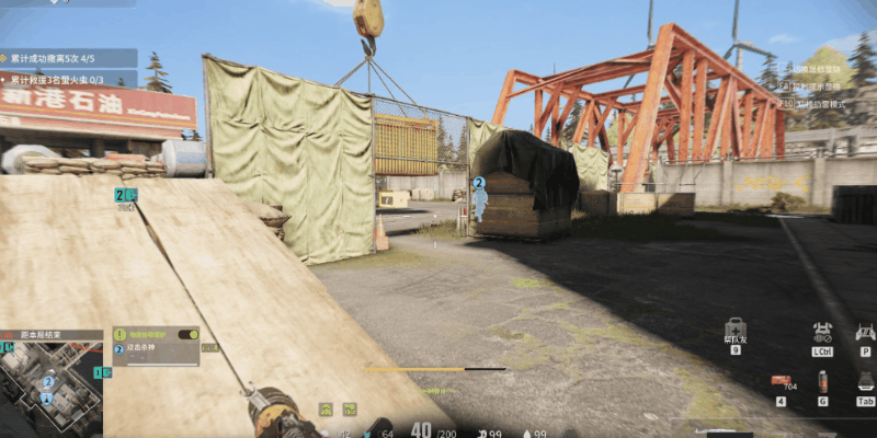 之后往前走,在写着新港制油厂牌子的前方,有一个集装箱,集装箱下面会有一个刷金的巡回箱,集装箱里面的办公包和保险箱,分别会出币子和镭钻物品!这也是整个右侧资源最集中的一个点,同时争夺也最为激烈!