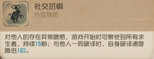 入殓师的【外在特质-看淡生死】配合【假寐】天赋,能够很大程度的减缓狂欢之椅起飞倒计时的速度,为队友破译以及救援争取到更多的时间。