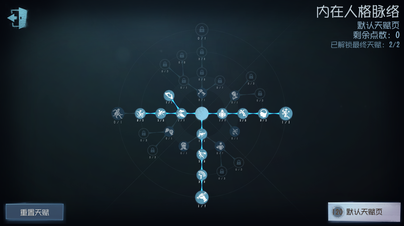 这套天赋是求生者最为常用的天赋,【破窗理论】+【膝跳反射】能够很好的让我们拉开与灵柩之间的距离。【不屈不挠】可以提高倒地后自愈和移动的速度,帮助我们快速自愈和爬地窖逃脱。点出三层【求生意志】可以加快被牵气球时挣扎的速度,防止监管者强行将我们挂在破译进度很多的密码机附近,在一些特殊地形也可以配合队友从气球上挣扎下来。