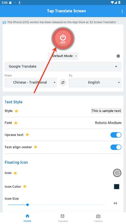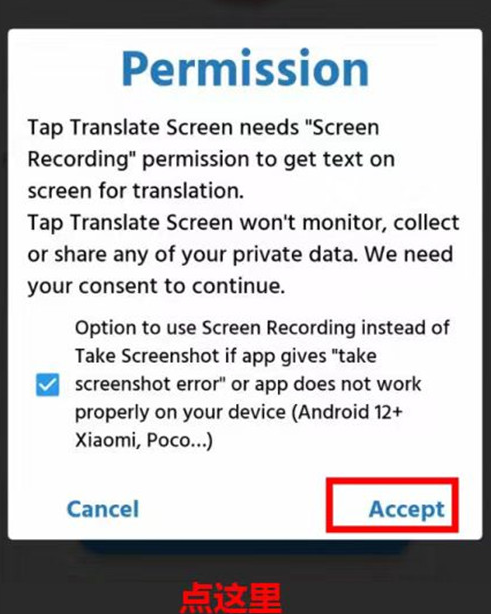 6.弹窗确认使用Tap Translate Screen,点击立即开始;