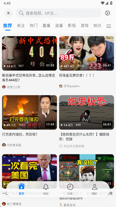 1.打开BiliPai,可以看到首页就会有很多的推荐视频,大家喜欢哪个就可以直接点击进入看哪个。