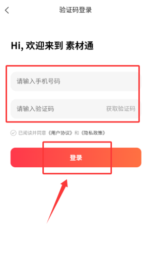 2.在登录页输入手机号验证码,点击登录完成账号验证。