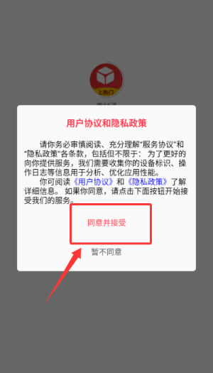 1.于用户协议弹窗中点选同意并接受,确认后进入验证码登录页面。
