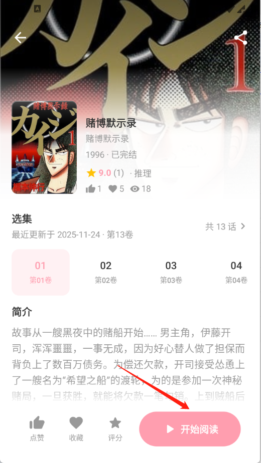 5、用户点开想看的漫画进入详情页点击开始阅读。