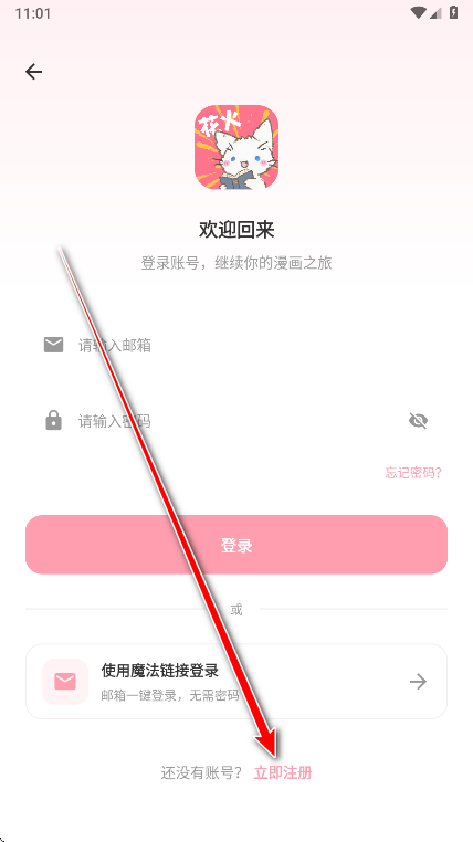 3、在页面找到立即注册并点击。