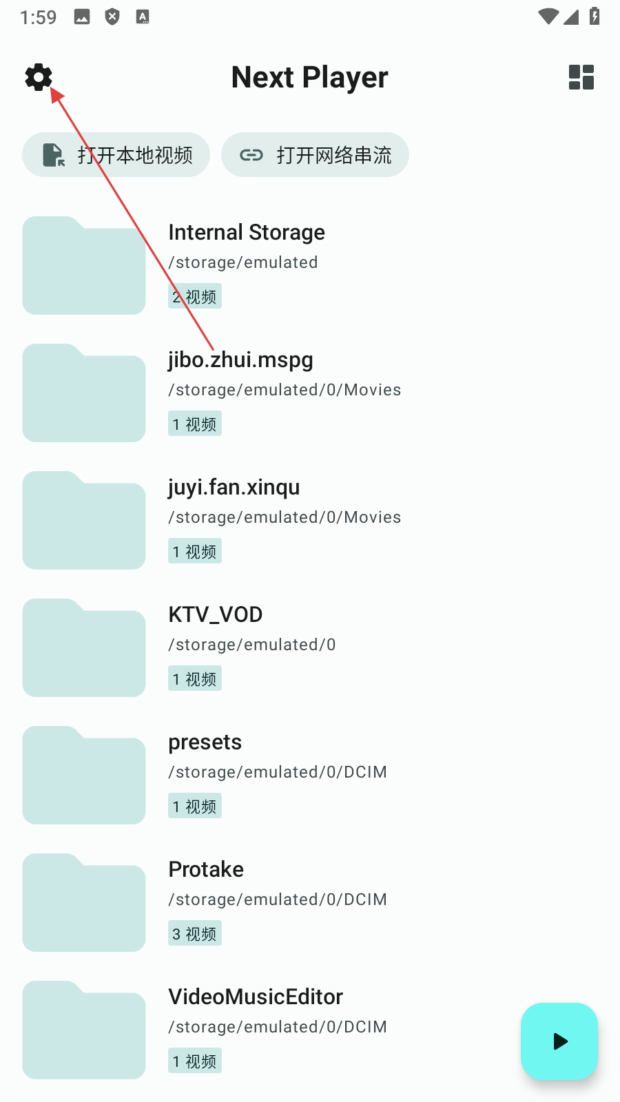 1.打开Next Player,点击【左上角设置图标】,进入设置页面