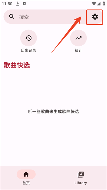 1.如果手机系统在安卓9以上,会出现没有歌曲的情况,这时请点击右上角的齿轮设置图标