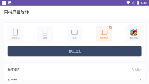 闪指屏幕旋转是一款提供游戏旋转的工具平台,体积小巧,操作便捷。专为地铁跑酷玩家设计,能一键实现横屏,拓宽视野、提升上限,解决游戏无法横屏问题。可自由切换屏幕方向,无繁琐操作,一键快速设置。还能将设备屏幕设为反向横向,轻松管理屏幕方向,根据传感器信息旋转,设置纵横向。运行无需联网,一键操作,权限管理简单。特色是功能多且在线提供,旋转便利,有有趣小玩意,免费提供游戏工具且支持一键操作,是多功能旋转平台。