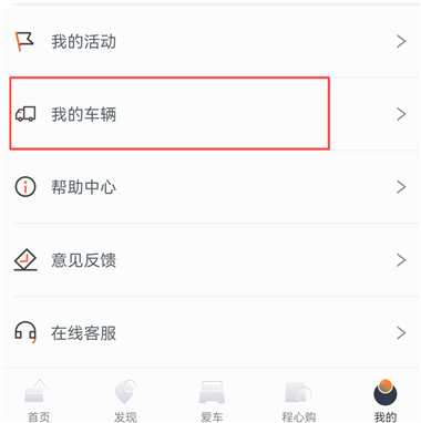 1、进入【我的】界面,点击【我的车辆】。