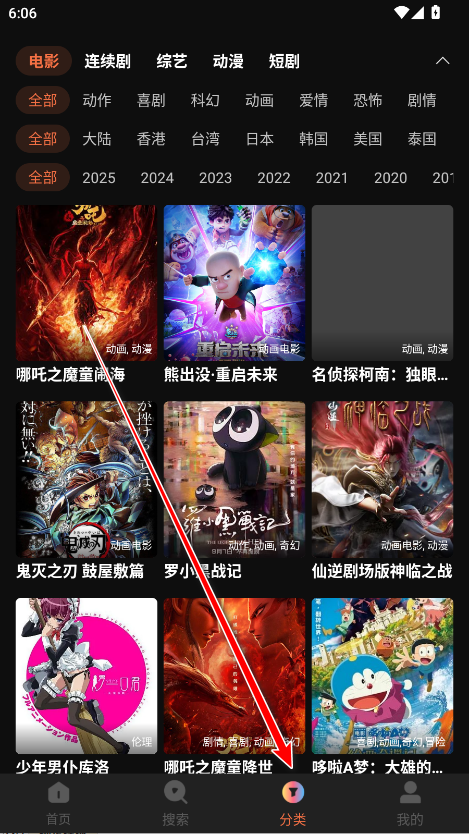 4.点击分类,即可查看根据时间、区域、剧情等而划分的影视资源了。
