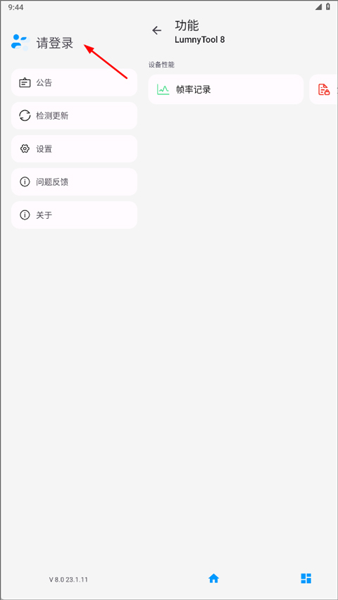 1、打开LumnyTool APP,点击左上角三条横线,再点击【请登录】;