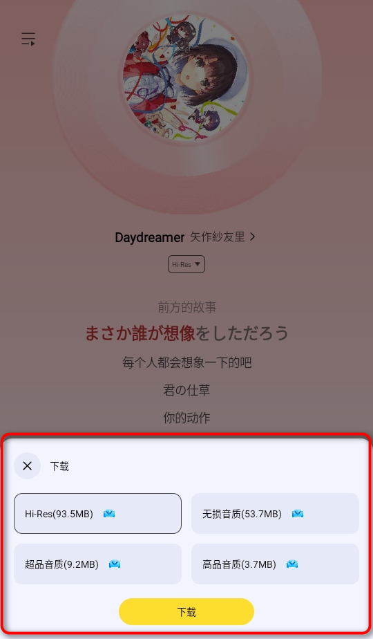2、选择你想下载的音乐格式和质量,这里因为是解锁了会员所以无损也能下。