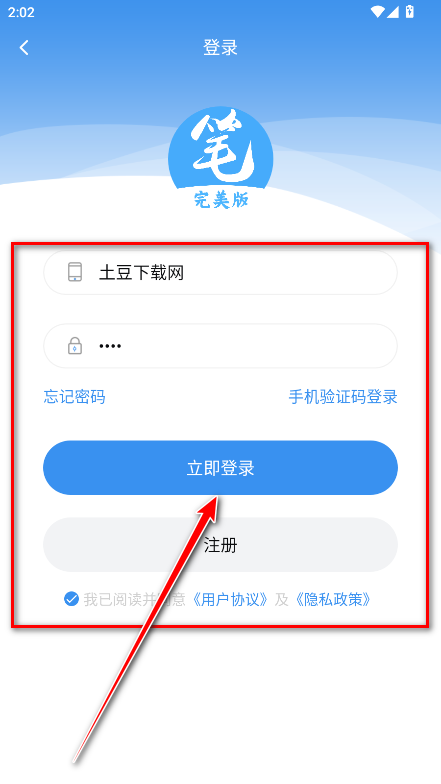 3.请输入账号和密码,勾选我已阅读并同意《用户协议》及《隐私政策》,然后点击立即登录即可。