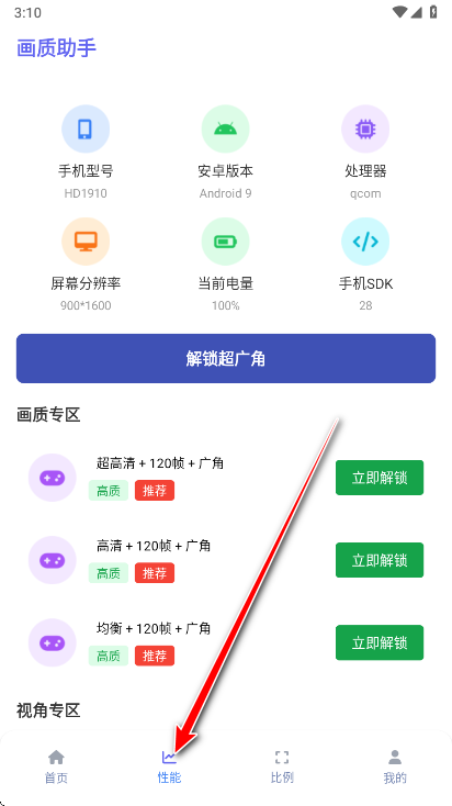 5.点击后面的立即解锁,即可调整自己的游戏的画质。