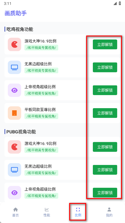 6.同理,在比例板块,点击后面的立即解锁,即可使用相对应的功能哈。