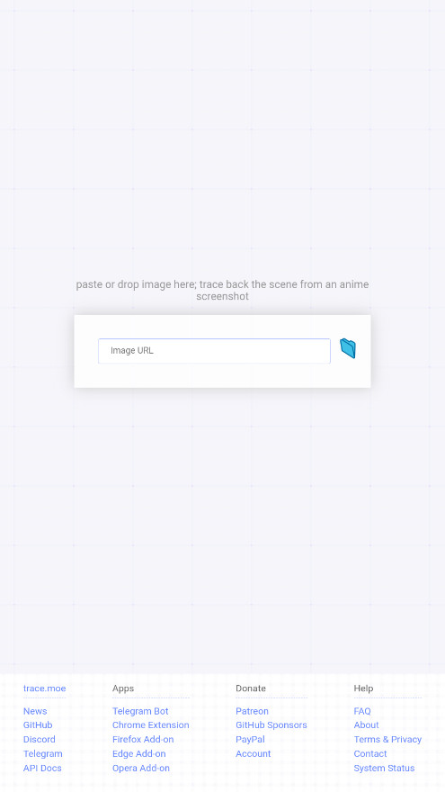 1、在本网站页面下载安装tracemoe软件并打开,在内容空白区域填入动漫识图的地址,或是在文件中添加想要进行识图查看的图片。