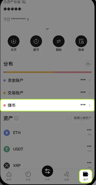 打开易欧交易平台app, 在 【资产 】-【赚币】