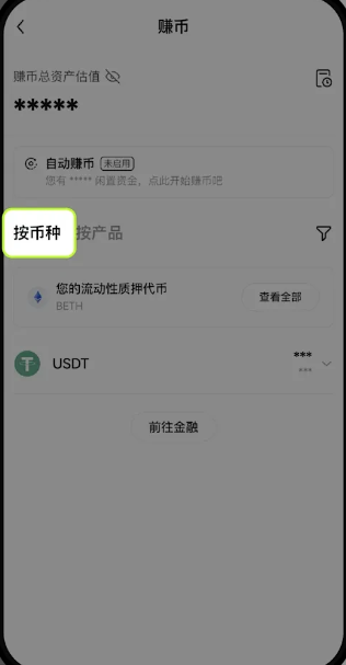 【按币种】 或【按产品 】 区选择活期简单赚币