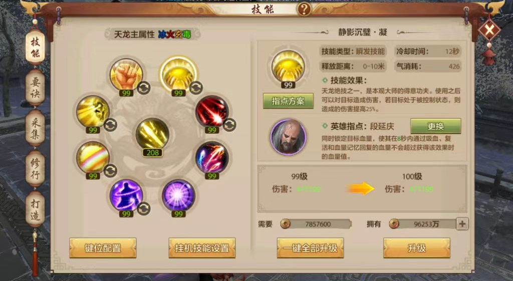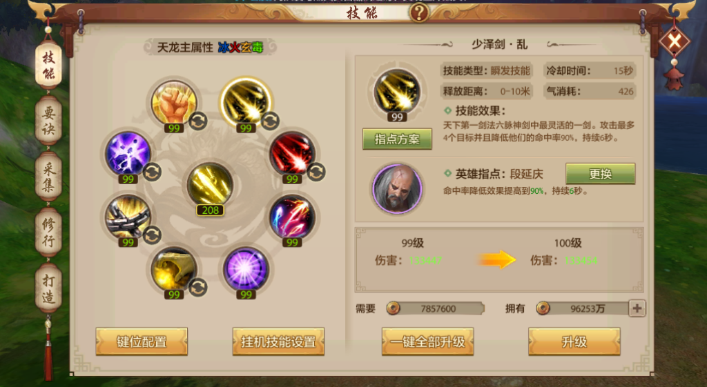 诸位少侠可知,在对战PK中,最让人头痛的就是核心爆发技能在关键时刻MISS,例如唐门的爆发技能天机弩、少林如来神掌、星宿天地同寿、丐帮飞龙在天等等。该技能让天龙在作战中对敌方造成了极高的减益效果,让诸门派皆是摸不着头脑~