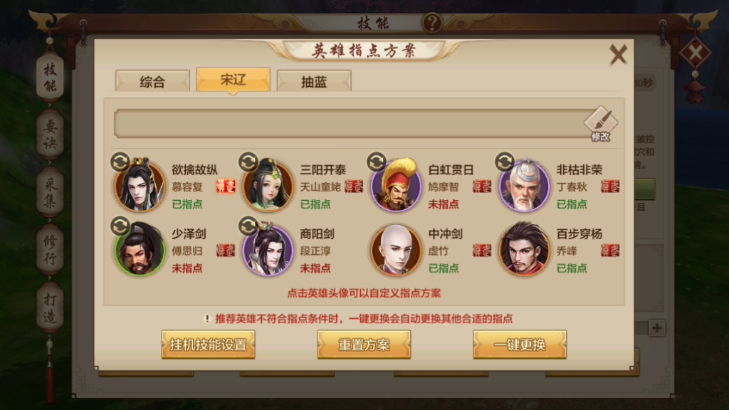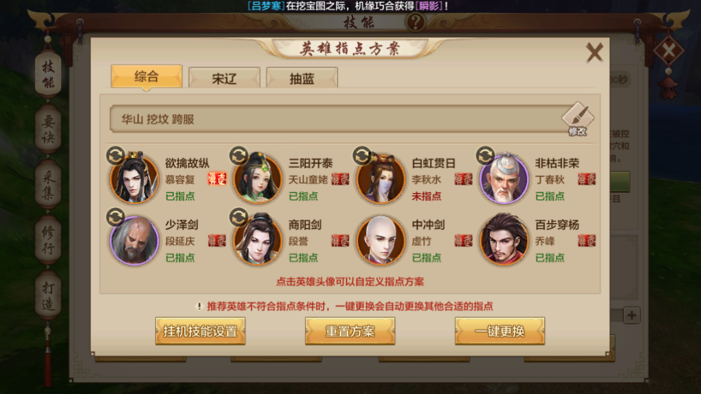 如果己方阵容实在缺少控制,少侠可以自行变换,例如将白虹贯日更换为八门金锁,将欲擒故纵更换为一阳指,弥补团队的控制缺陷。总之,天龙在团队中是既能当爹又能当妈,别问有没有,你缺什么我就来什么!