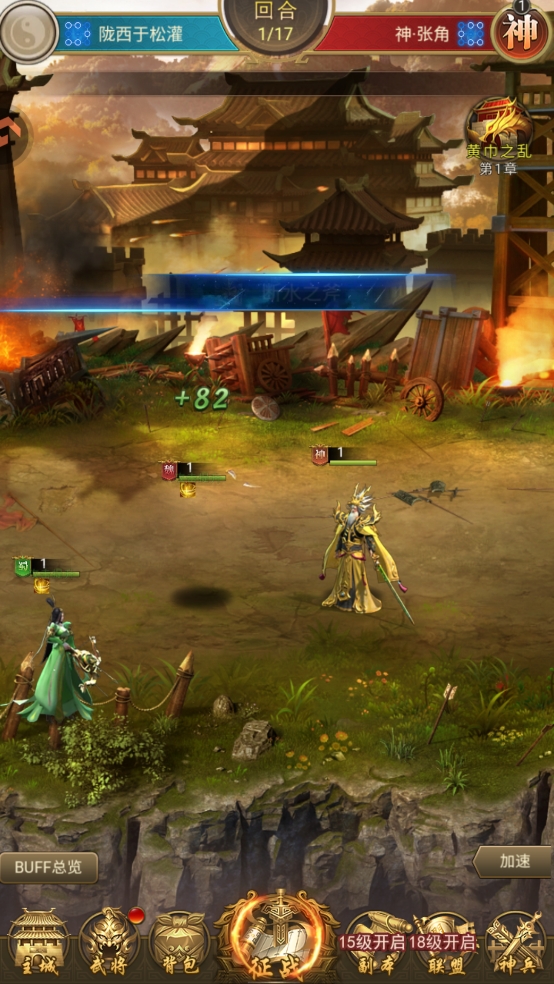 4、点击征战按钮进入战斗,游戏内的战斗是自动进行的,还支持加速功能哦。