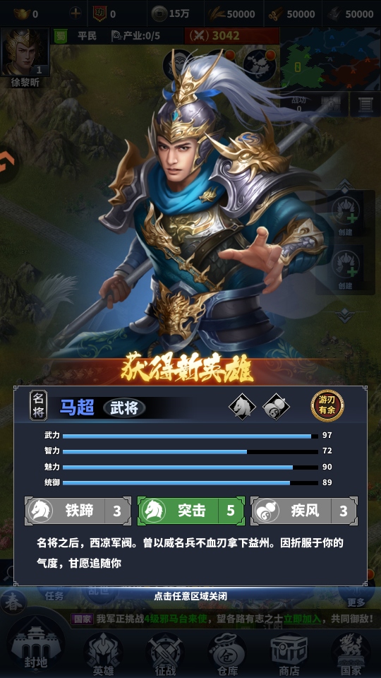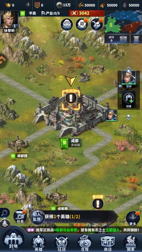 8.然后我们就可以解锁我们的第一个城池,开始我们的天下一统霸业的开始。
