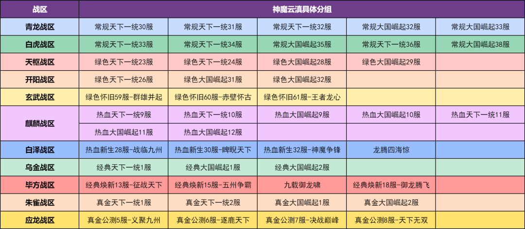 赛事服务器分组如下: