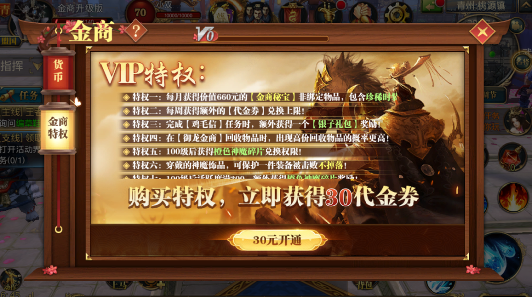 2、全区全服开放金商VIP等级,提升VIP等级获得更多特权。