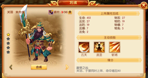 在游戏里也是分为了魏国、蜀国、吴国、神、魔五个阵营,每一个阵营里面都是有很多武将可以供大家获取使用。其中神魔阵营的武将是比较难获取的,但是相比较于其他阵营的武将这两个阵营的武将强度也是比较的高。