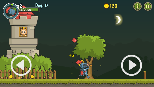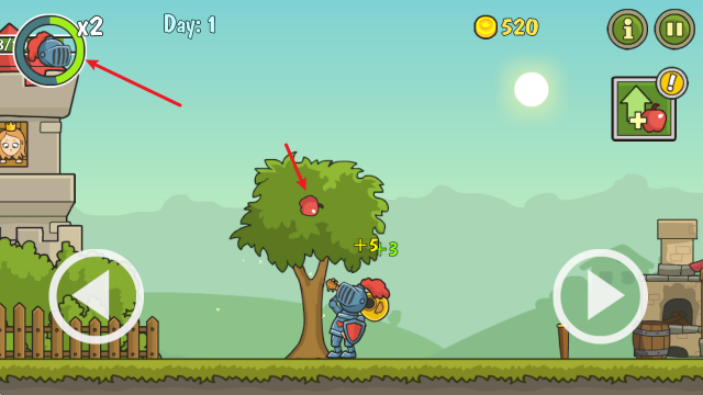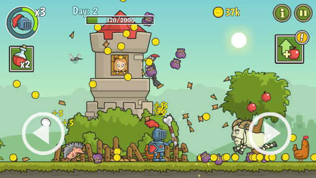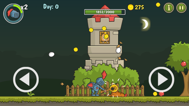 1、点击左右箭头进行移动,我们的骑士会用武器进行攻击。