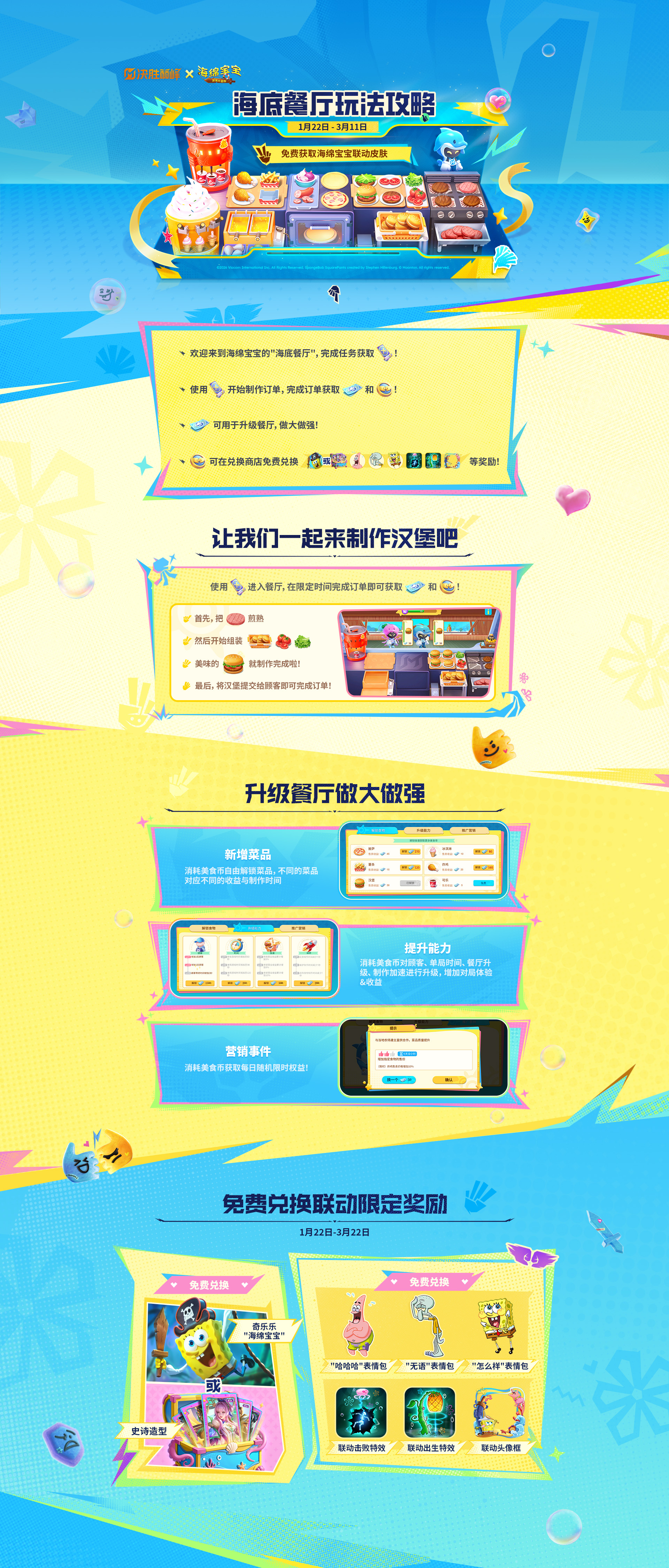 海底餐厅活动1月22日-3月11日上线,让我们一起与海绵宝宝来做汉堡吧!