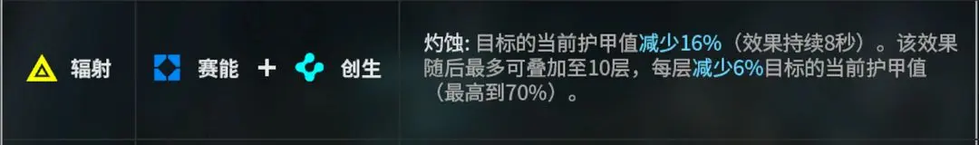 以上必备,长专加触发概率,辐射(赛能+创生)减护甲,火也减护甲