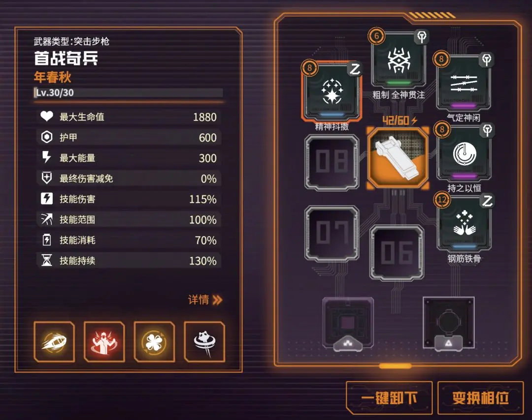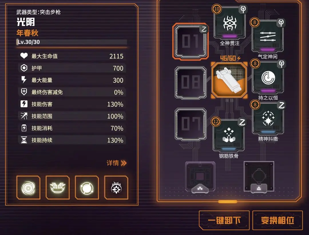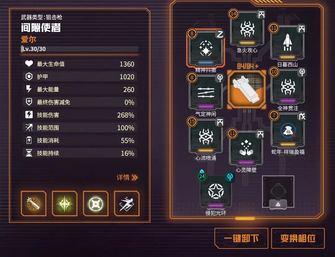 根据想要的效果自由搭配执行卡即可,比如我想降低蓝耗提高持续时间,增加破甲