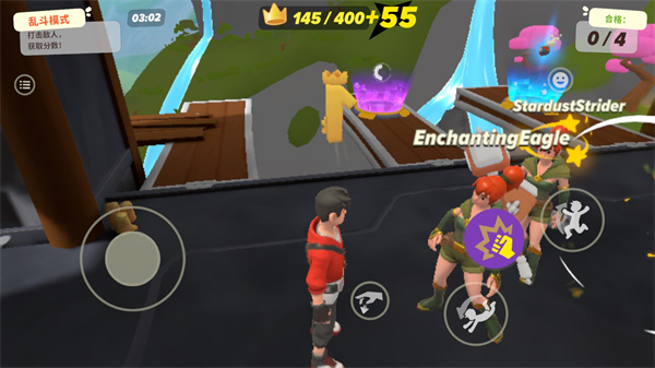 4、正式开始后左边控制角色的移动,右边是攻击、跳跃和翻滚。