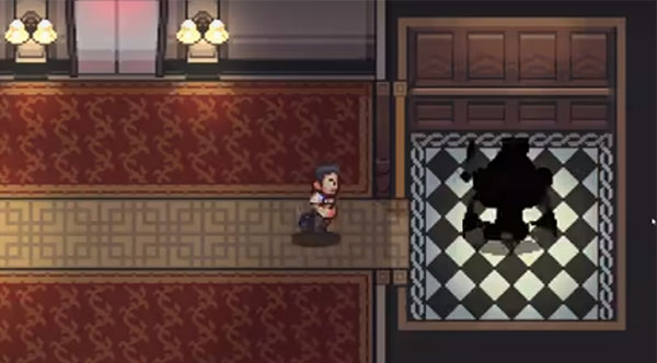 6、首先进入酒店前台,感叹号处可以获取信息,靠近点击右下角的手印即可查看、拾取等。
