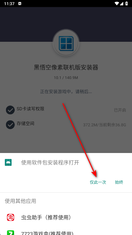 1.在本站下载好游戏后,开启存储权限等待解压后,开始安装游戏本体