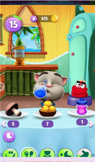 买了婴儿药水后,它会出现在我们的食物盘中,就可以随时让宠物喝了。点击婴儿药水,宠物就会喝下去,这时候就会出现特效,就像电视剧里神仙变身的特效一样,宠物瞬间就会变成婴儿,大家想要的可爱状态也就又回来了。