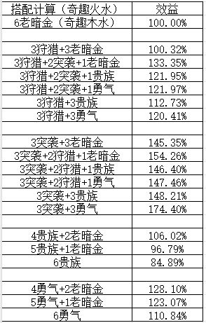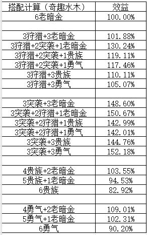 PS:其中“老暗金”因为品质和等级问题实际表现会比纸面数值低一些;勇气套是必出专属词条的,所以额外效果已经算上(不包括专属的基础特性词条效果);贵族套可以解放出天赋的元素之灵,实际效果会比纸面更高一点
