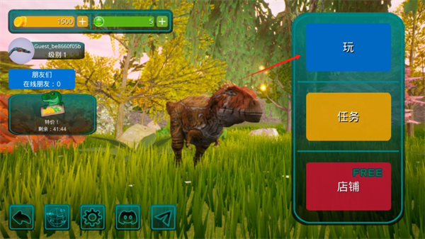 3、自定义的装扮系统,捏造专属的恐龙形象,在左边可以编辑各种外貌和颜色。
