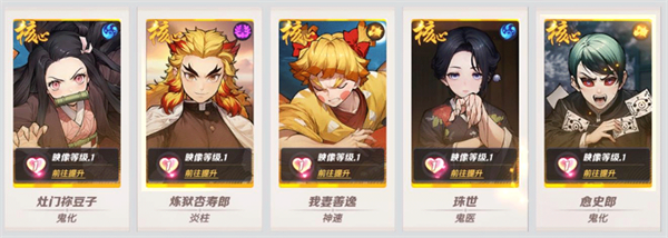 灶门妳豆子·鬼化+炼狱杏寿郎·炎柱+我妻子善意神速+珠世·鬼医+愈史郎·鬼化