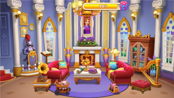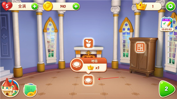 2.在完成消除游戏之后就可以通过消除获得的皇冠进行装饰房间。