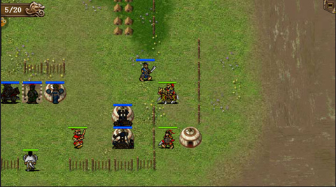 较佳的方案是:首先全军向西,可以引下上方两拳师,然后消灭左路水寇。岳云继续向西到西南岸登陆,可使东门敌军混乱。其他人向东御敌,占领兵营后,水上敌人降攻防。岳飞单挑秦桧,敌军全部混乱。想得高分的话,可以把上面5个对话全部触发。通常情况下,回合用的越少,得分也会越高。